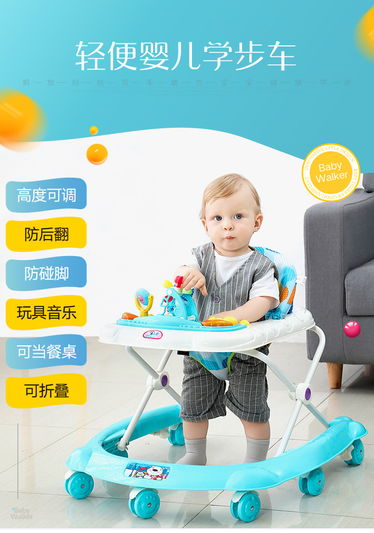 Honglue Baby Sit-to-Stand Learning Walker Baby Baby Walker 6-18 Months Adjustable Children's Driving Aid Musical Walker Sapphire [Short Push Handle+Music Box] [Image Price Brand Quotation]-