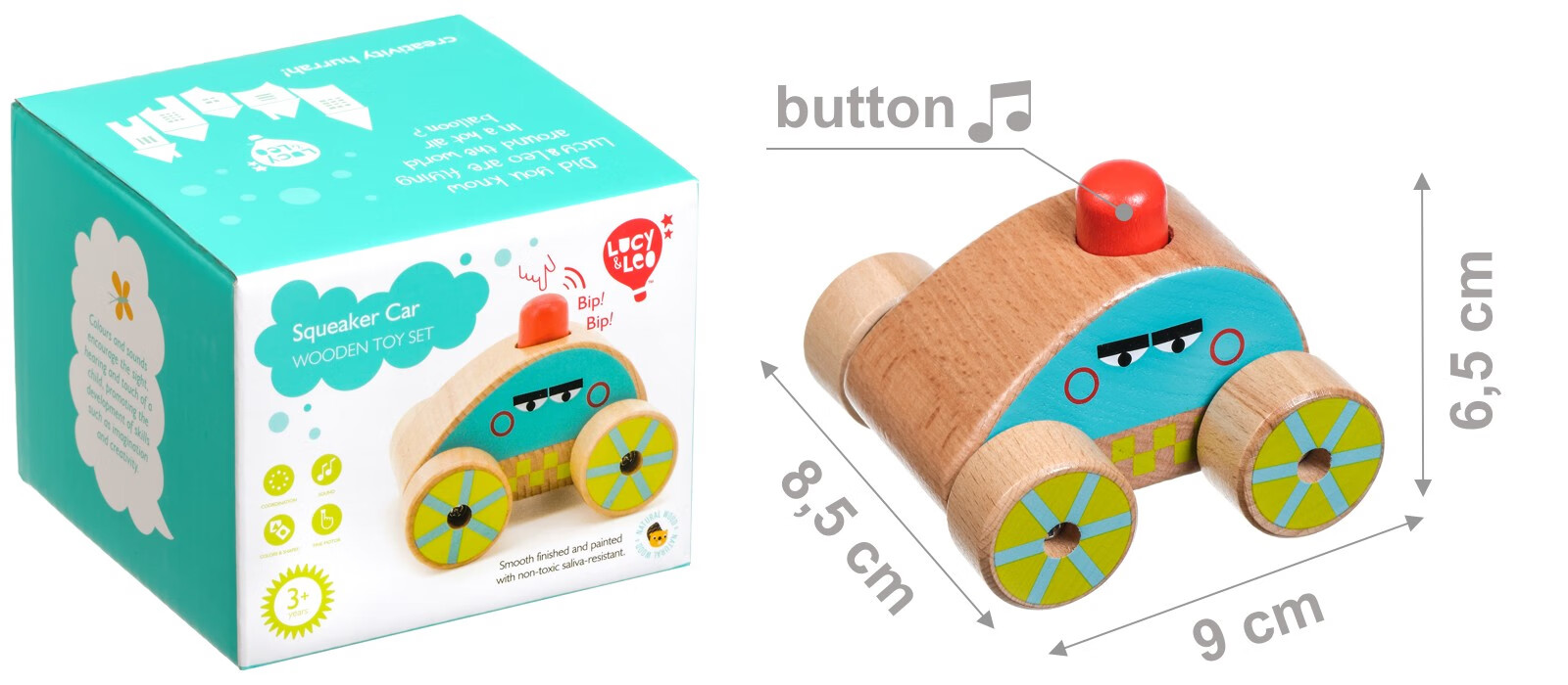 Lucy&Leo Children's Push Music Player Push Toys 6-12 Months Baby 1 Year Old Toddler Stroller Wooden Gift Drip Car