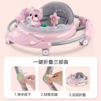 New Baby Sit-to-Stand Learning Walker 6-speed adjustable multi-function rollover prevention O-shaped legs for boys and girls Musical walker 6-18 months Sit-to-Stand Learning Walker Pink - Suitable for 6-18 months Regular Wheel Plate
