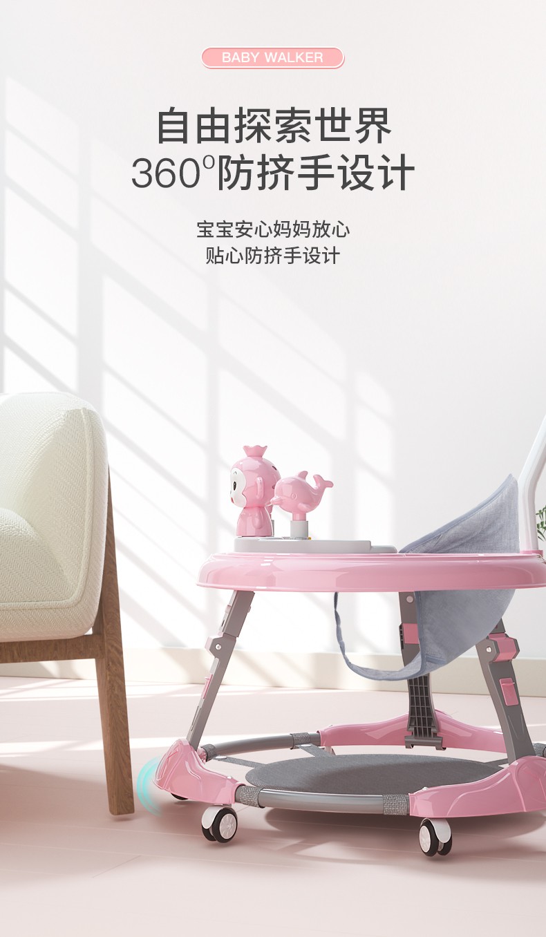 Xilaitu Baby Sit-to-Stand Learning Walker O-shaped Legs 6-8 Months Old Infant Infant Infant Infant Walker Pushable, Seatable, Anti rollover, Learning to Walk Sky Blue Ribbon Push Handle Sunvisor [6-wheel chassis+one button Portable+high impact pedal]