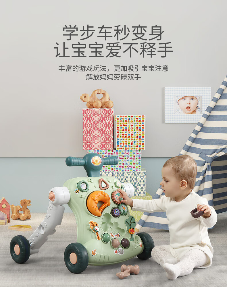 KUQIXIANG Infant and Toddler Baby 0-1 Year Old Early Education Boys and Girls Sit-to-Stand Learning Walker One and a Half Years Old 2 Birthday Gift Rechargeable Shake Horse [6-in-1] Sit-to-Stand Learning Walker+Shake Horse+Slide Car+Yoyo
