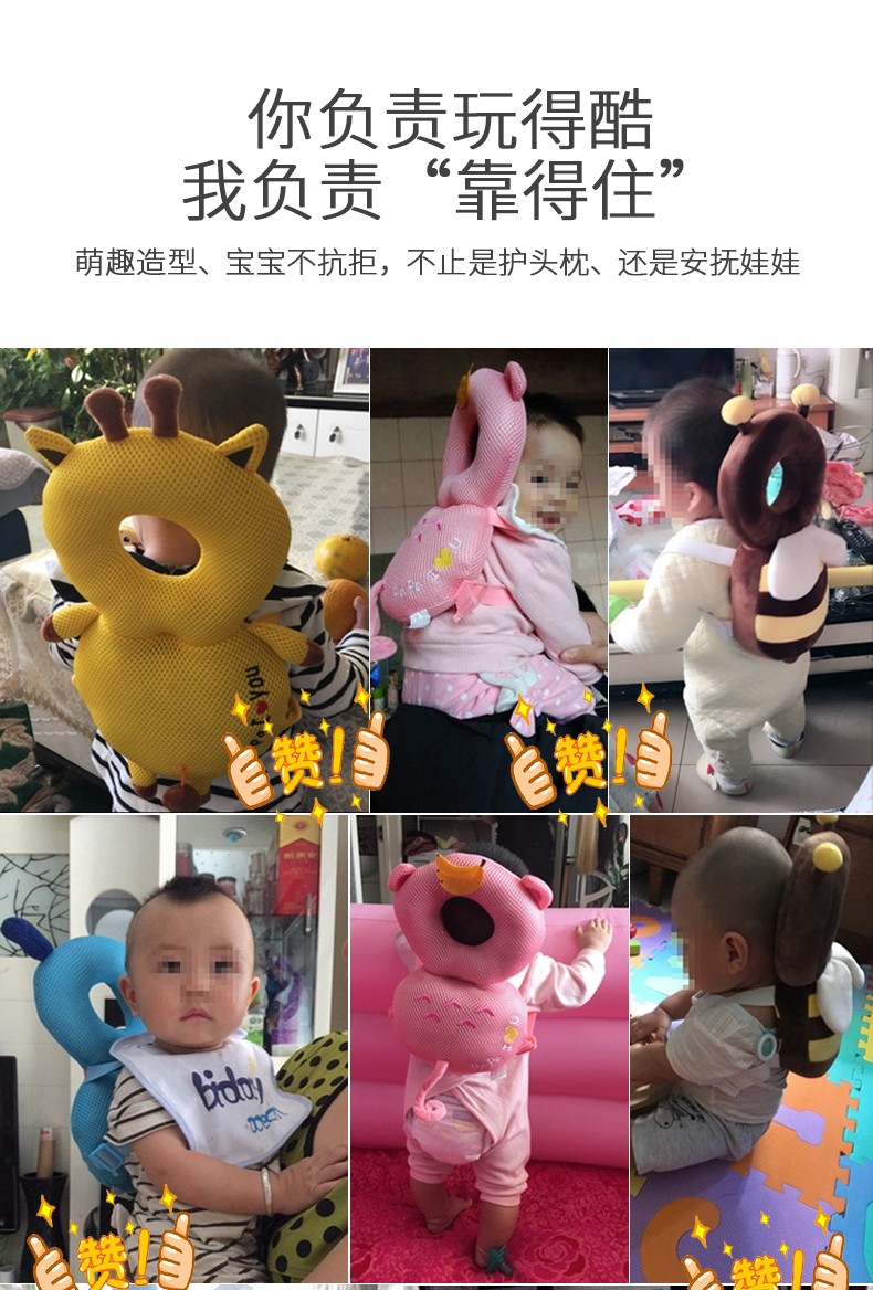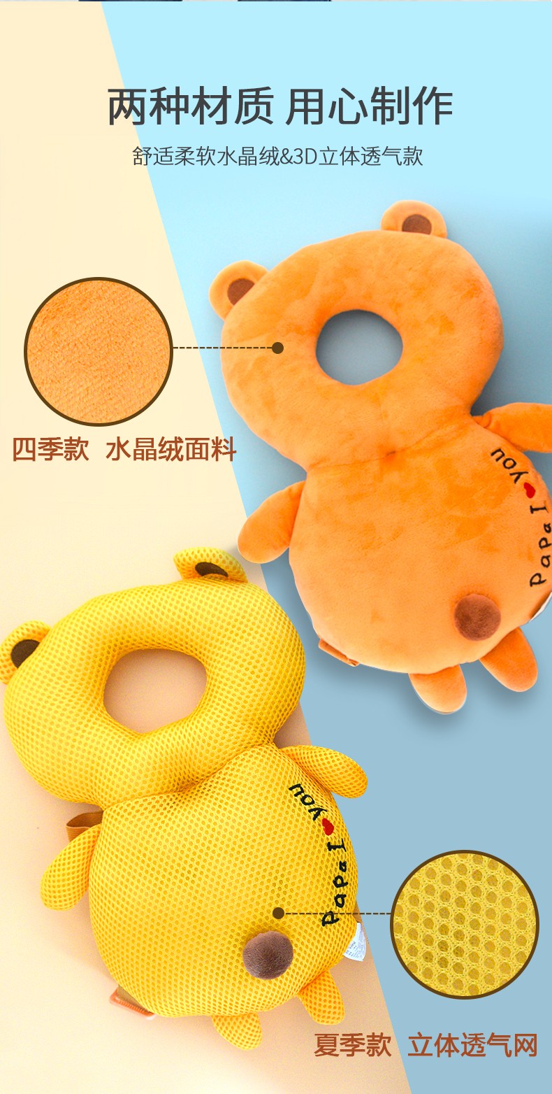 Duck hugging baby anti fall pillow protection pad, head pillow, summer breathable and anti-collision baby toddler anti fall headrest, Toddler Head Protection Pillow, brown monkey breathable style, and free horizontal strap