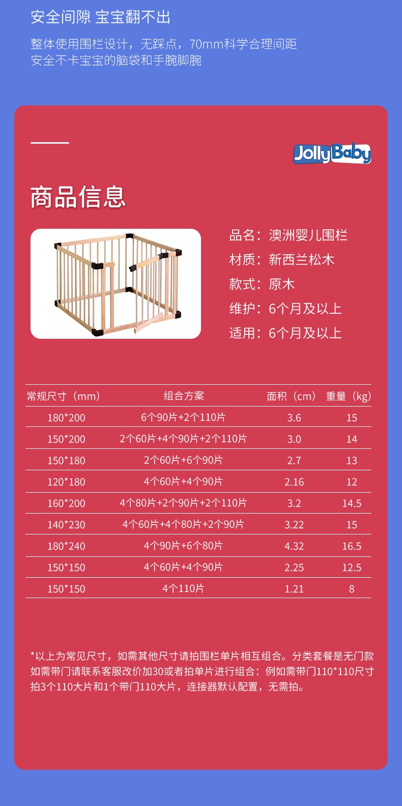 JollyBaby is sourced from Australian baby playpen, children's baby Toddler proof safety, solid wood with door indoor, New Zealand pine style 140 * 200 [including door] [image price and brand quotation]-