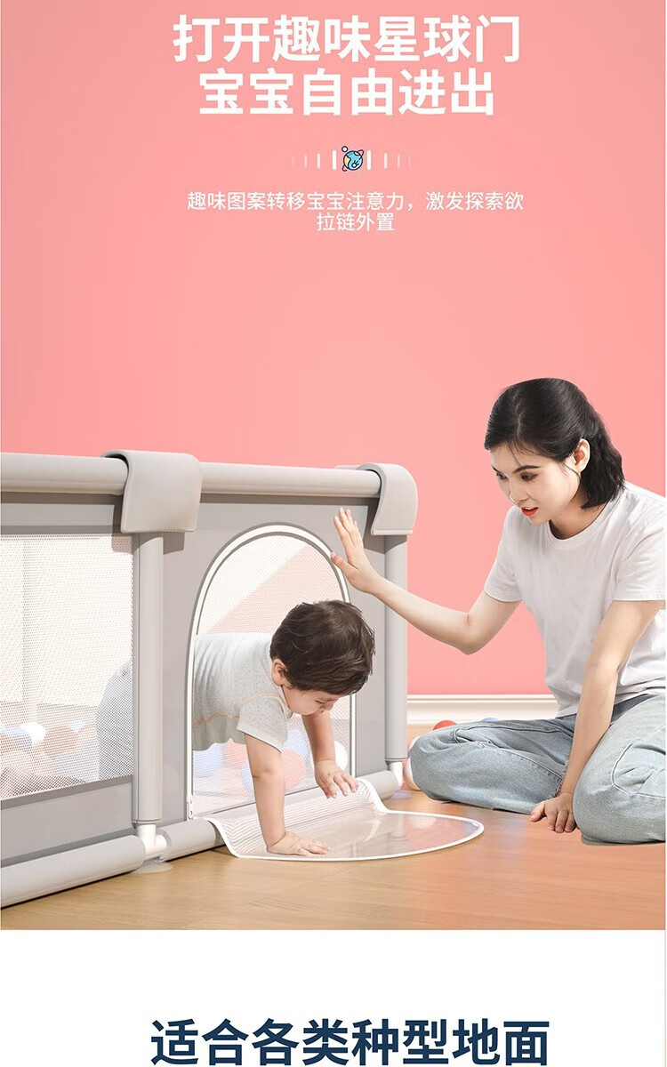 Yierle Baby Fence Ground Playpen 6-12 Months Baby Home Tour Playpen Climbing Pad Children Portable Fence Gray Inner Diameter 1.5 * 1.860 Ocean Ball+Pull Ring+Bitable, Washable, Fade Resistant, Widened Sucker Set [Image Price Brand Quotation]