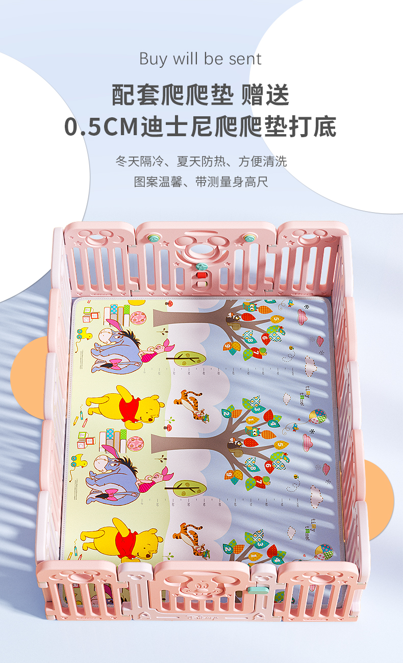 Disney Official Brand Flagship Baby Indoor Playpen Children's Home Floor Fence Baby Roof Pad Safety Floor Indoor Mickey Playpen 6+2
