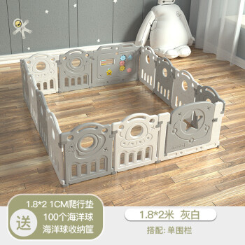 Children's fence climbing pad safety baby floor anti fall Toddler proof pad indoor safety baby indoor home living room toddler home fence game playpen gray white 1.8 * 2 meter fence+Toddler proof pad thickness 1cm [picture price]