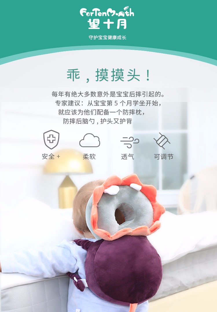Hope October Baby's Anti Drop Pillow, Baby's Anti Drop Head Protection, Child's Learning to Walk, Anti Drop Head Protection Pad, Spring, Summer, Autumn, Winter Naughty Little Crocodile (Crystal Velvet) with Horizontal Fixing Band [Image Price Brand Q...