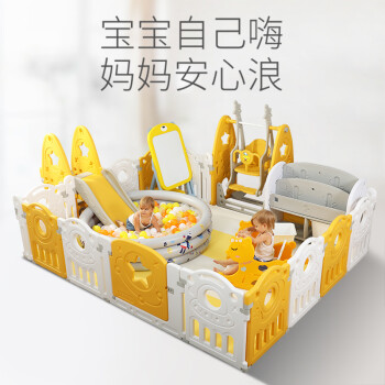 Children's Fence Safety Toddler proof Pad Indoor Safe Home Walking Game Playpen 1.8x2 meter Fence+Swing+Slide+Basketball Stand in Baby Room [Image Price Brand Quotation]-