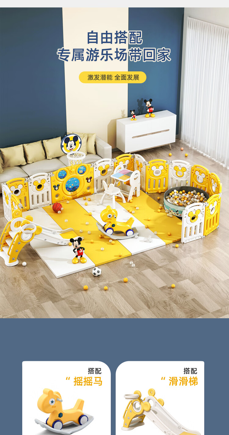 Disneyland Children's Playpen Indoor Home Toddler proof Pad Safety Infant Walking Safety Indorplaypen 1.6-1.87 Package 6+Gift Set [Image Price Brand Quotation]-